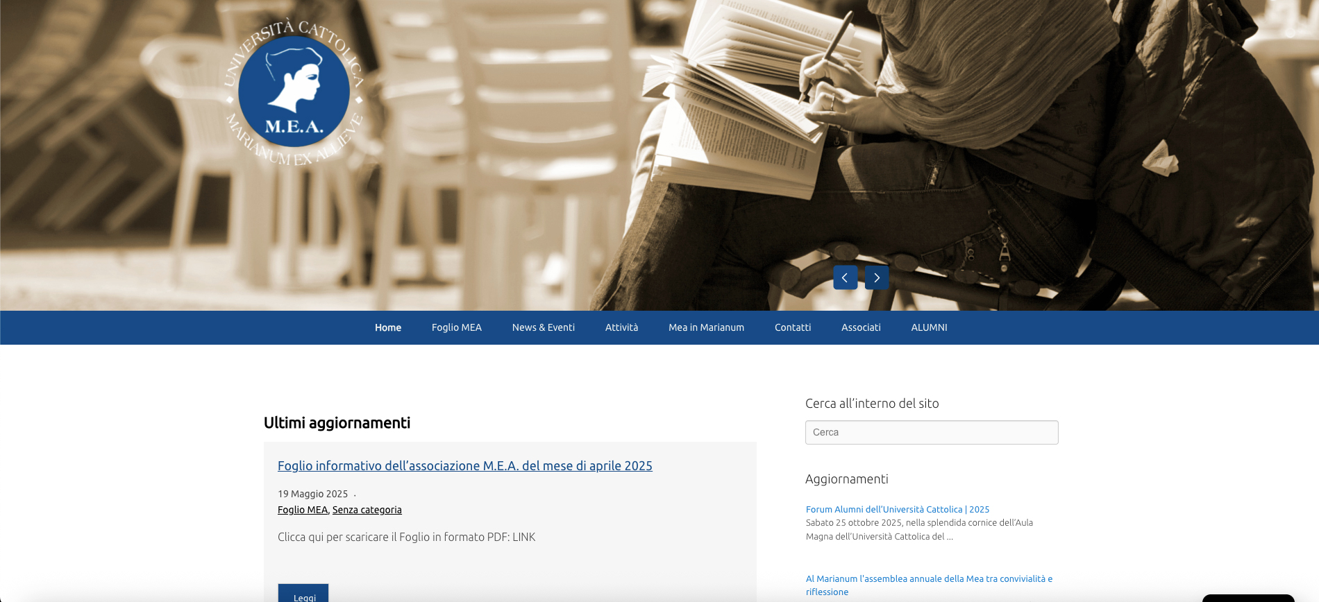 Personalizzazione di un modello wordpress per il sito dell'Associazione delle Ex Allieve del collegio Marianum, storica residenza per le studentesse dell'Università Cattolica di Milano