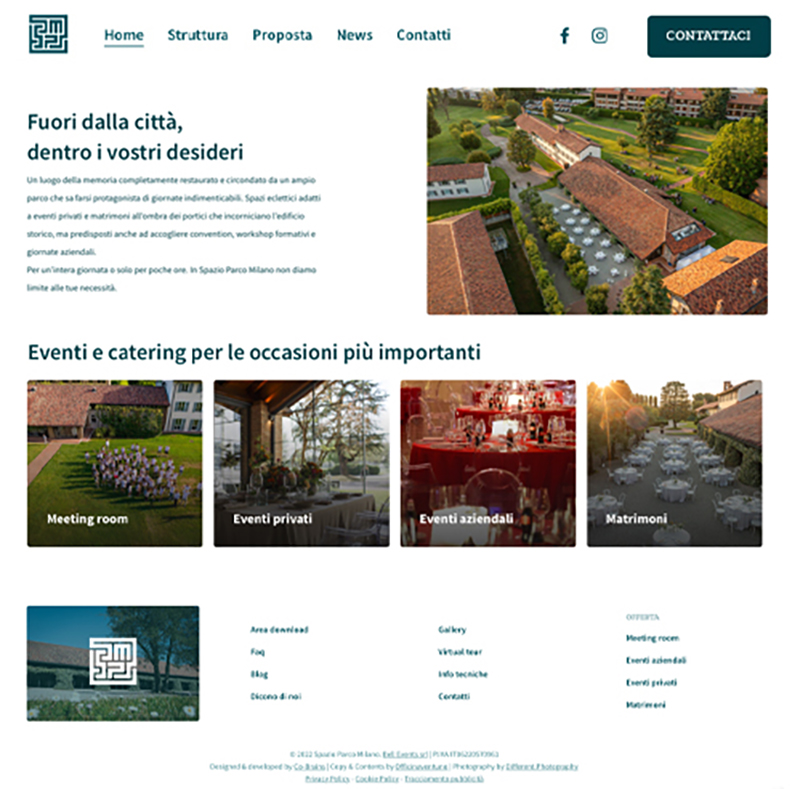 Attività di consulenza per Spazio Parco Milano, location di eventi alle porte di Milano, con particolare attenzione alla strategia di contenuti (blog, brochure, eventi corporate).